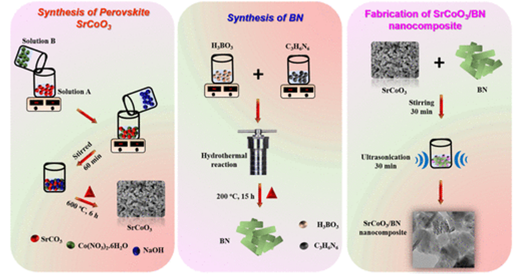 3/BN納米復(fù)合材料的制備過(guò)程包括簡(jiǎn)單的沉淀、退火處理和超聲波處理。通過(guò)各種光譜工具的應(yīng)用證實(shí)了這些納米復(fù)合材料的成功形成。值得注意的是,制備的SrCoO