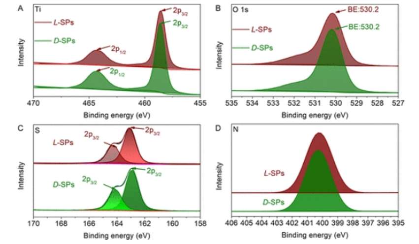 2 SPs的XPS數據。(A) Ti2p在手性TiO
