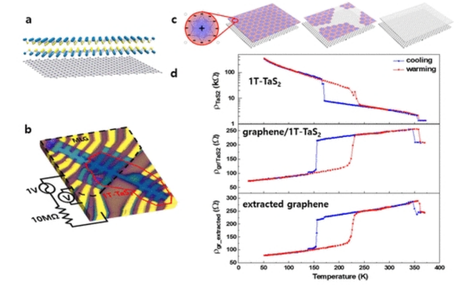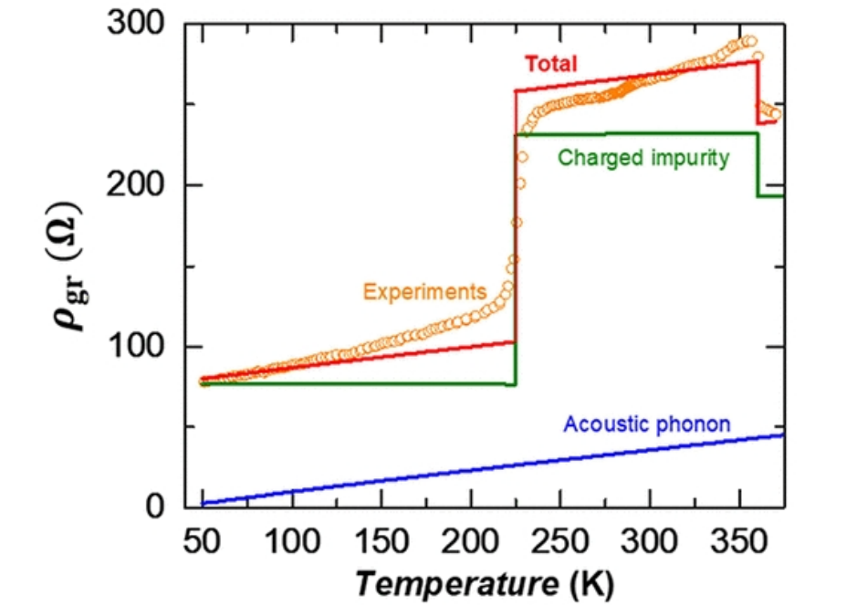 2中相關(guān)無序的形成密切相關(guān)。特別地,相稱的CDW形成具有電勢波動的周期性電荷分布,從而構(gòu)成相關(guān)的帶電雜質(zhì),這導(dǎo)致石墨烯中電阻率的降低。CDW石墨烯異質(zhì)結(jié)構(gòu)系統(tǒng)的演示有助于理解與CDW系統(tǒng)的組合,并為控制石墨烯的溫度相關(guān)電阻率和開發(fā)有用的功能電子設(shè)備(如基于石墨烯的傳感器和存儲設(shè)備)鋪平了道路。