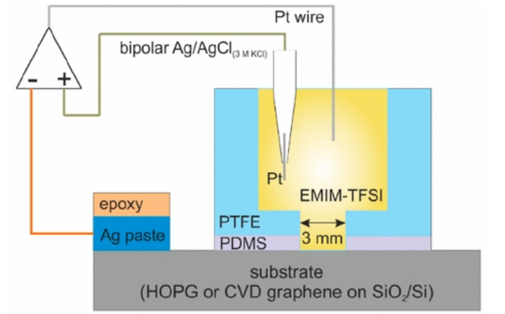 碳/離子液體界面的物理電化學是電化學儲能、離子電子設備和潤滑等廣泛應用中發生的過程的基礎。闡明碳/電解質界面的電荷存儲機制將有助于更好地理解這種系統的操作原理。在此,本研究探測了在從單層石墨烯到石墨的模型碳系統和離子液體1-乙基-3-甲基咪唑鎓雙(三氟甲基磺酰基)酰亞胺(EMIM-TFSI)之間形成的電化學雙層中存儲的電荷。研究了石墨烯層數對界面總電容的影響。研究證明,在純EMIM-TFSI和中等電位偏壓下,石墨烯和石墨的電子性質決定了界面的整體電容,而電解質對后者的貢獻則不那么顯著。在EMIM-TFSI與相對介電常數不同的溶劑的混合物中,電解質離子和溶劑分子之間的復雜相互作用會影響界面處存儲的電荷,在某些條件下,這會克服相對介電系數的影響。這項工作為室溫離子液體和碳材料界面的電化學雙層結構這一不斷發展的主題提供了額外的實驗見解。