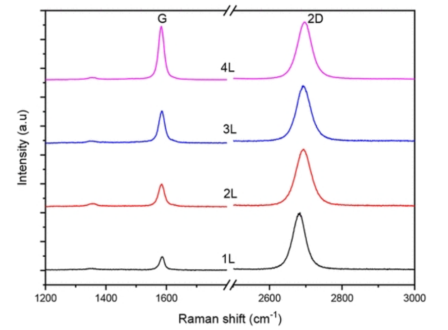 圖2. 單層和多層CVD石墨烯的拉曼光譜。