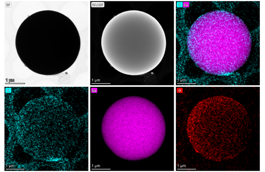 圖 5. 充電過程后0.8 V的Ga@rGO陽極的TEM圖像和相應的EDS圖。