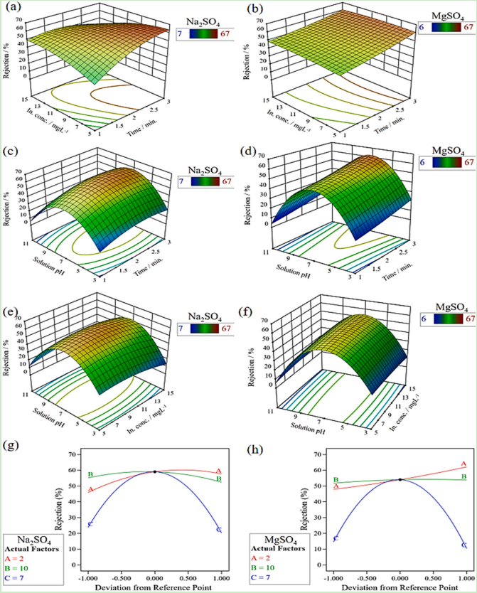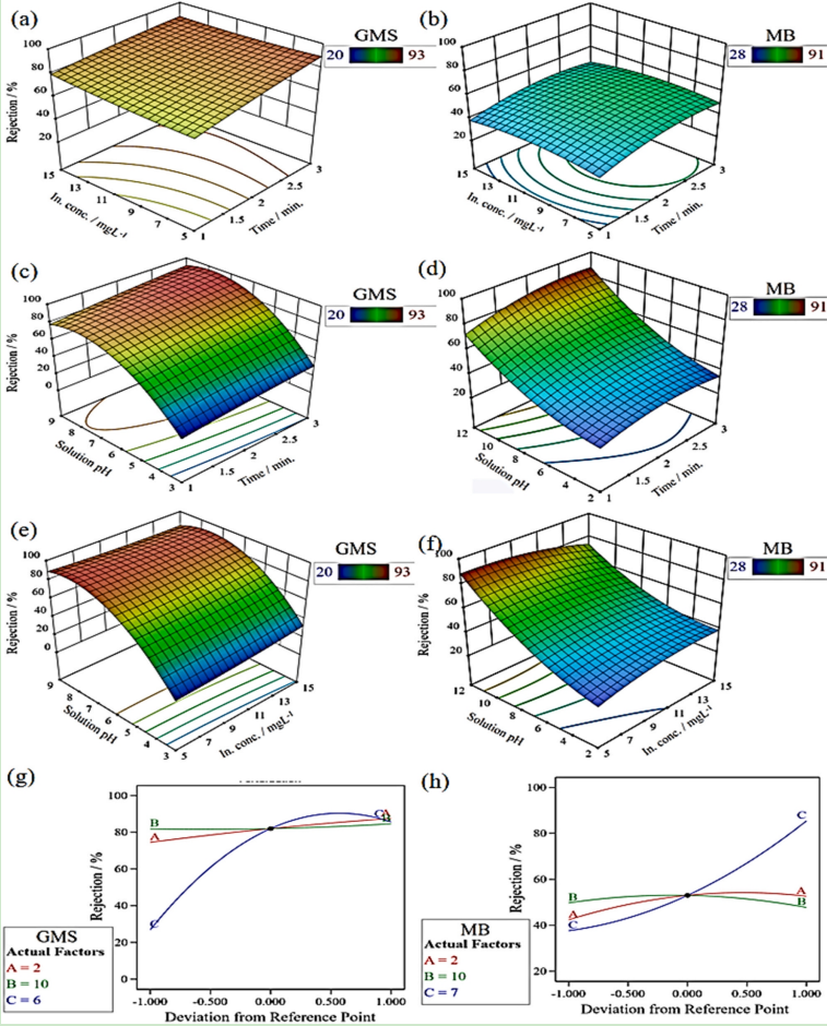 4鹽的性能。使用響應面法(RSM)模型對初始污染物濃度、時間和溶液pH等操作參數(shù)進行了研究和優(yōu)化。結(jié)果證實了該過濾工藝的顯著效率,對MB、GMS、Na
