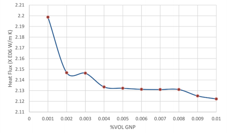 圖8. 隨 GNPs 成分變化的最大熱通量。
