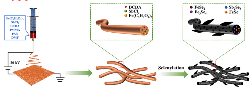 圖1. FeSbSe-NGCNFs復(fù)合材料制備過程示意圖。