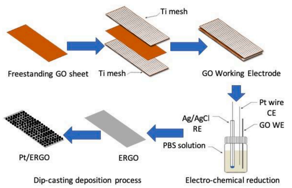 圖1. ERGO 和 Pt/ERGO 合成路線示意圖。