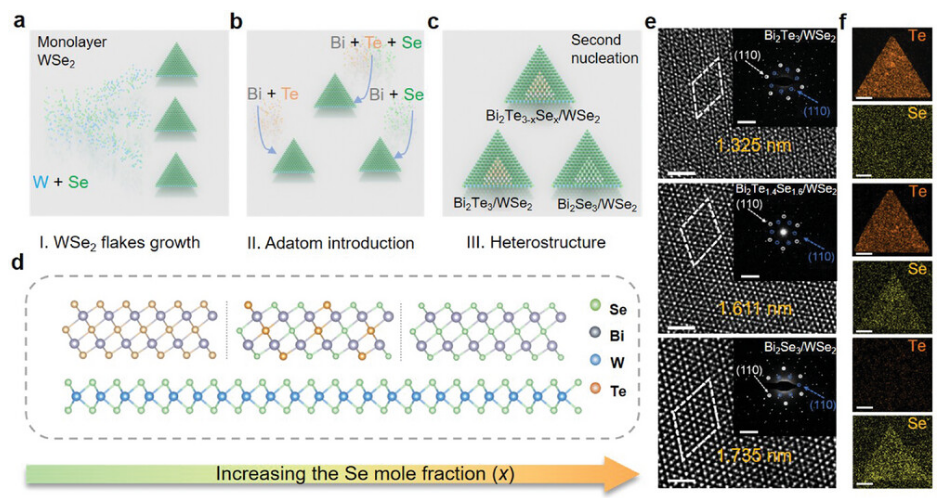 x-vdWHs(0≤x≤3)中能帶取向的調控。實驗和理論結果表明,合成的VDWH可以從I型(WSe