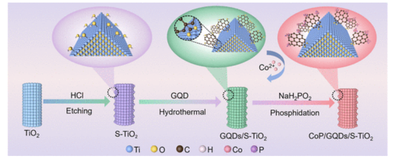 Fig 1. CoP/GQDs/S–TiO2 合成過(guò)程的示意圖。