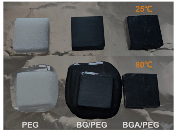 圖7. 熱板上PEG、BG/PEG和BGA/PEG的光學照片。