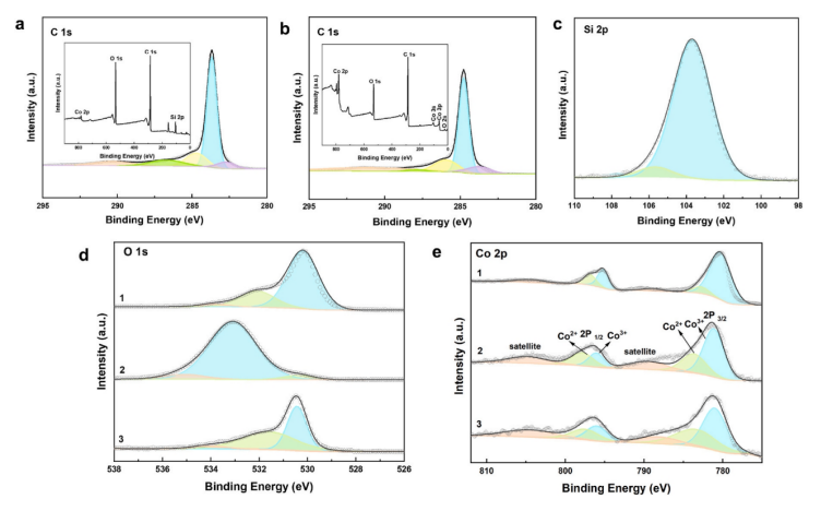 4 (c)的Si 2p光譜(插圖是測量XPS光譜)。(d,e):Co