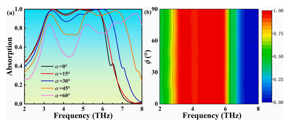該設計兼具高吸收率、寬動態調節范圍及結構簡化優勢,解決了傳統器件功能單一、制備復雜等問題,為THz通信、成像等場景提供了高效可調的器件方案。