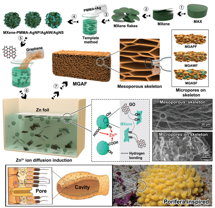 圖1. 通過Zn²?擴散誘導和硬模板法制備MGAF的流程示意圖
