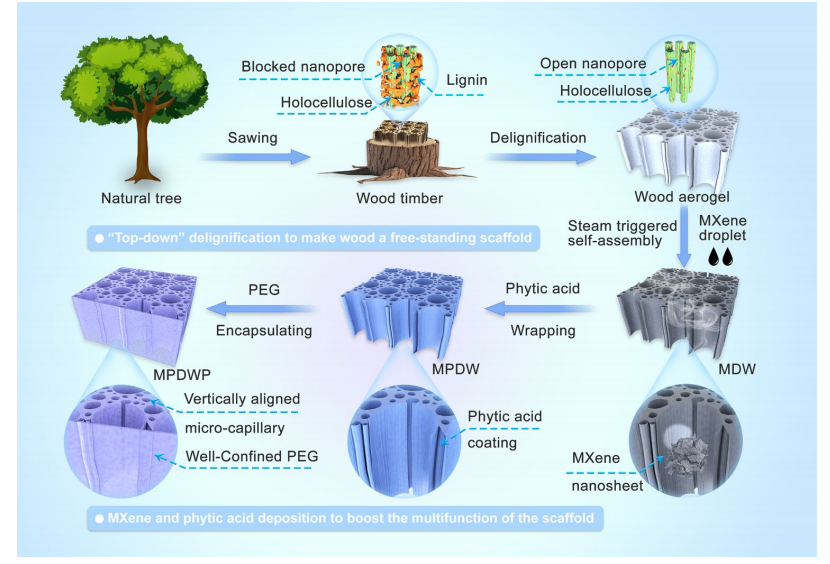 木材-MXene定向傳熱:利用木材天然各向異性結構,結合MXene的高導熱路徑,實現熱能定向高效傳輸。