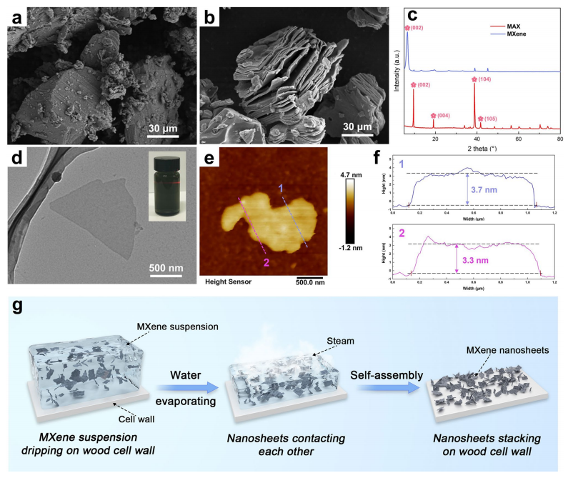 (g)動態過程可視化(蒸發誘導MXene納米片自組裝機制)。