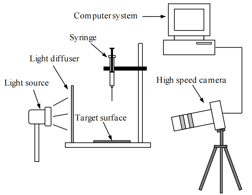 圖2.1. 用于液滴沖擊實(shí)驗(yàn)的實(shí)驗(yàn)裝置示意圖。