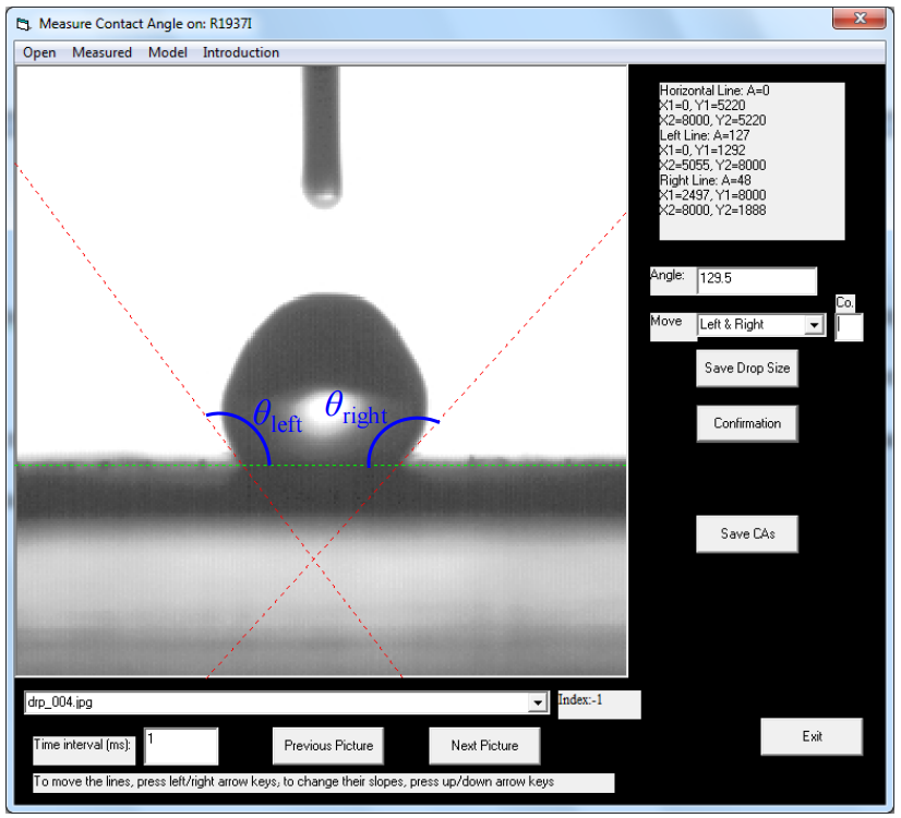圖2.5. 用于測量水在壓實(shí)碳片上接觸角的Visual Basic軟件界面。