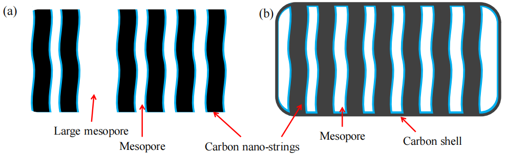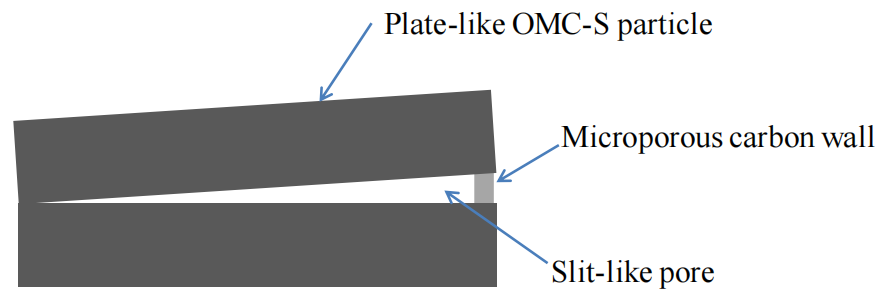 狹縫型孔道(slit-like pore)的形成可能與OMC-S顆粒的團(tuán)聚堆積有關(guān),微孔碳壁(microporous walls)兼具結(jié)構(gòu)支撐與傳質(zhì)限制的雙重作用;
