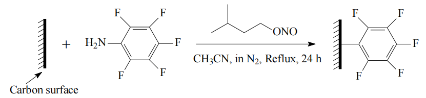 亞硝酸戊酯作為硝化試劑,可能與碳表面活性位點(diǎn)(如缺陷位點(diǎn)、邊緣碳原子)發(fā)生硝化反應(yīng)(引入硝基-NO?)或酯化反應(yīng)(生成C-O-NO鍵),具體路徑取決于表面電子狀態(tài)及溶劑環(huán)境;
