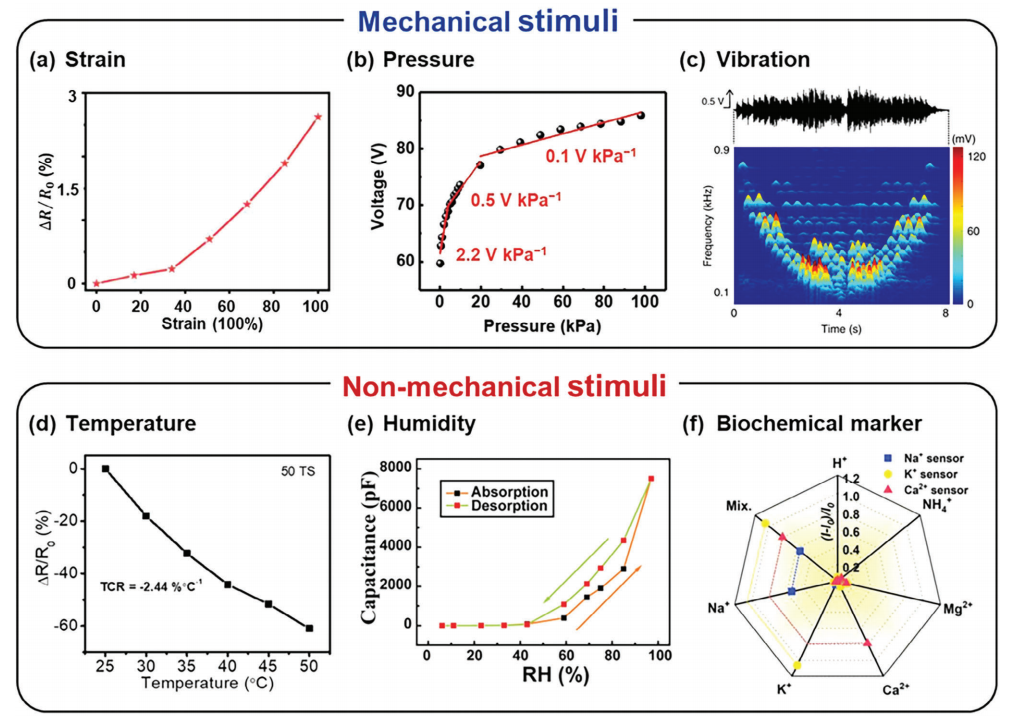 該圖表系統(tǒng)性地驗(yàn)證了軟多功能傳感器的 ‌多刺激響應(yīng)能力‌,其設(shè)計(jì)隱含兩大技術(shù)邏輯:‌傳感機(jī)制適配性‌: