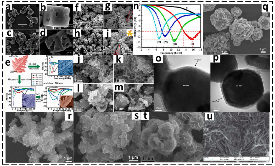 | e | 鐵氧化物/枝晶 | γ-Fe?O?微球 vs 鐵枝晶 | 枝晶多重散射拓寬吸收頻帶(>4 GHz)3 |
