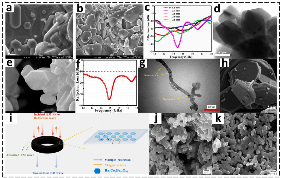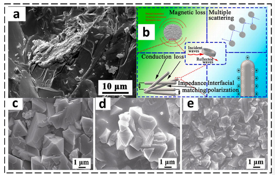 | e | Fe/SiC復合材料 | Fe納米顆粒(100–150 nm)嵌入SiC基體 | 磁-介電協同:Fe磁損耗 + SiC介電共振 |