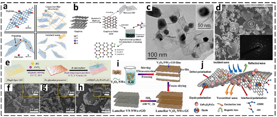 | b | GO→rGO→NG | 氮摻雜引入缺陷位點 | 調節帶隙,增強偶極極化和電導損耗 |