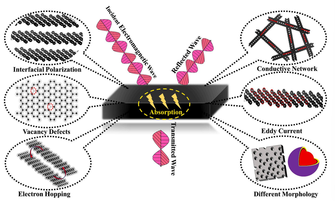 | a | 超薄石墨烯復合材料 | 類電容結構+電子傳輸網絡 | 界面極化弛豫主導,多重散射擴展衰減路徑 |