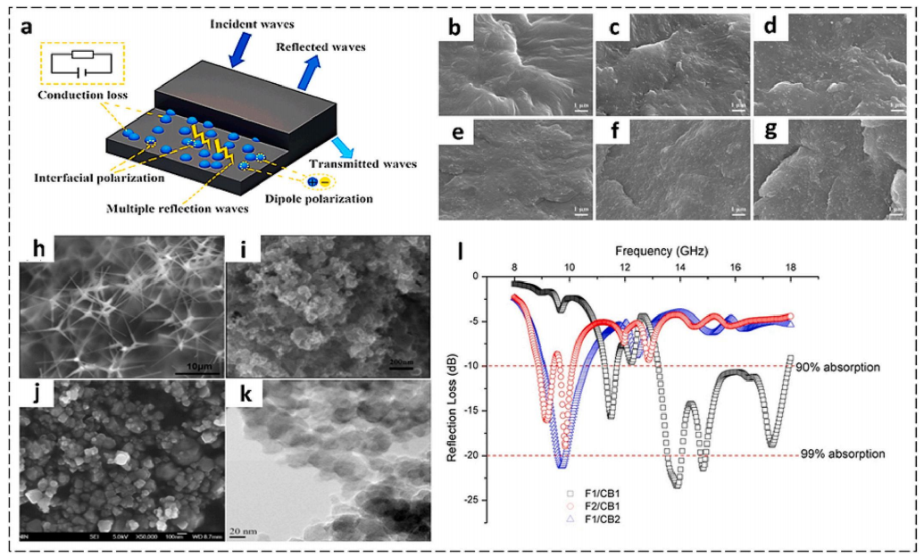 | k圖 | CNT/BF復合吸波機制示意圖 | 多損耗協同原理可視化(界面極化+磁共振) |