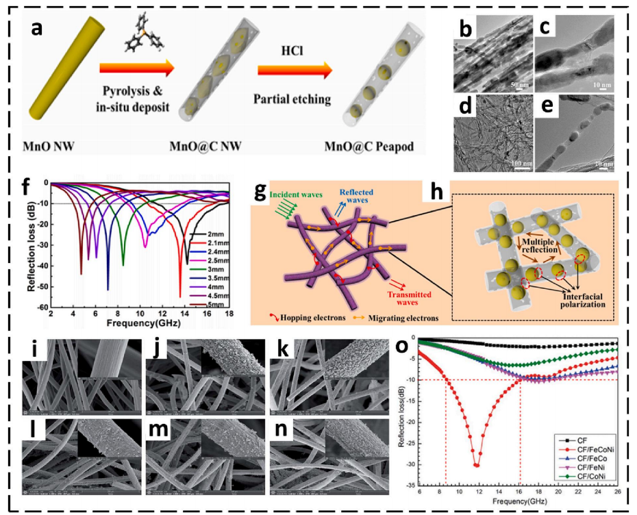 | i | FeCoNi/CF-1 | 碳纖維(CF)負載合金顆粒 | 碳纖維構建導電網絡,耦合渦流/介電極化損耗 |