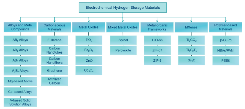 氫是能量密度最高的能源載體,對于實現向可再生能源的轉型至關重要。電化學儲氫技術由于其溫和的儲氫條件而具有廣闊的應用前景。然而,研究滿足美國能源部目標的最高效電化學儲氫材料仍是一個開放性問題。本文綜述了氫的制備、儲存以及電化學儲氫材料的發展情況。我們總結了合金和金屬化合物、碳質材料、金屬氧化物、混合金屬氧化物、金屬-有機框架、MXenes和聚合物基材料等電化學儲氫能力。觀察到混合金屬氧化物表現出優異的放電容量和循環穩定性。本文指出,創建具有大表面積、活性導電特性和低成本的新型材料至關重要。我們描述了電化學儲氫材料面臨的挑戰、差距和未來展望,希望本綜述能引起對高儲氫容量、高安全性、高循環穩定性和低成本電化學儲氫材料開發的更多關注,并促進其實際應用。
