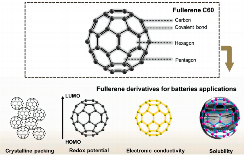 圖5. 富勒烯結構與富勒烯衍生物特性示意圖‌。