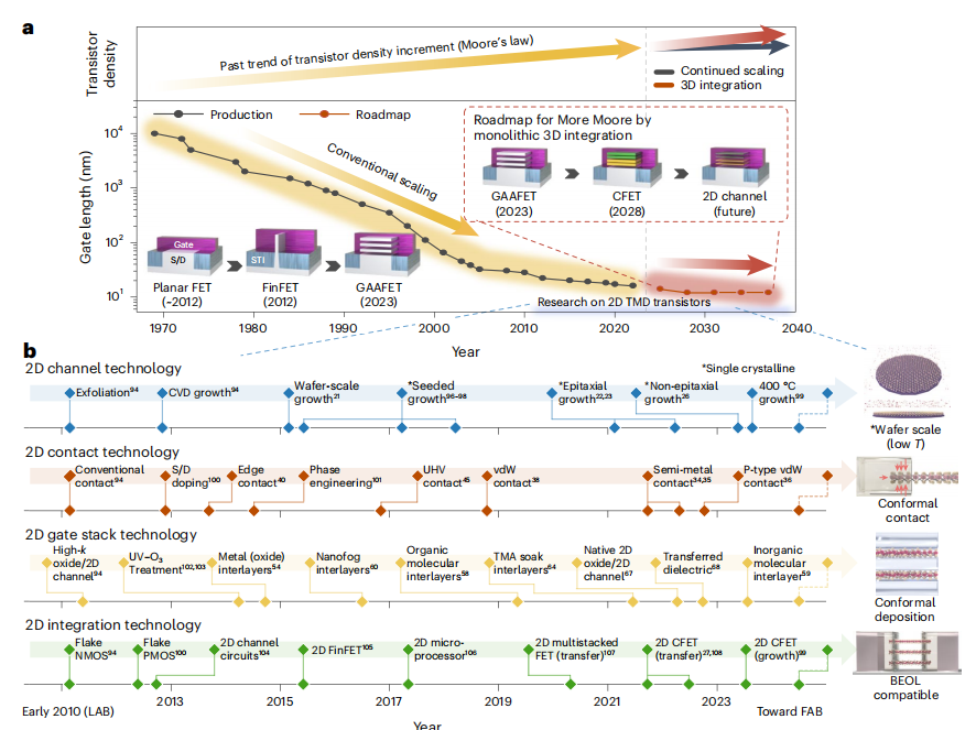 美國麻省理工學院機械工程系、三星電子高級技術研究院、伊利諾伊大學厄巴納-香檳分校等--超越摩爾定律的二維半導體未來