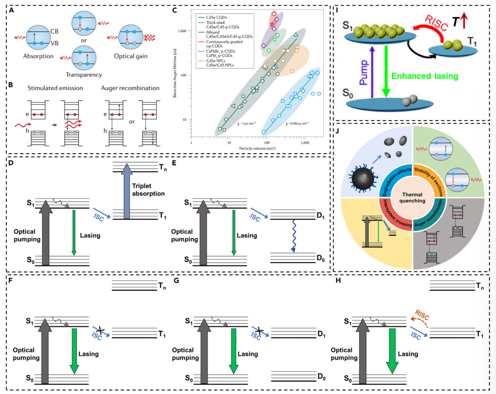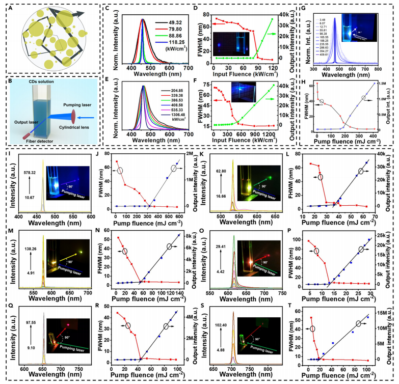 碳點(CDs)因其低成本、易制備、高穩定性和光譜可調性成為新型激光材料的研究熱點。盡管其作為增益介質的性能優異,但激光機制尚不明確,高增益CD的合成策略仍需探索。當前研究聚焦于低閾值固態單模激光器,而實現連續波和電驅動激光是核心挑戰。