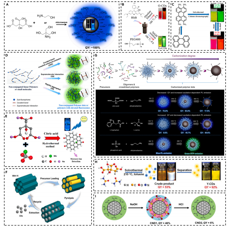 圖2. 高光致發光量子產率(PLQY)碳點的合成策略