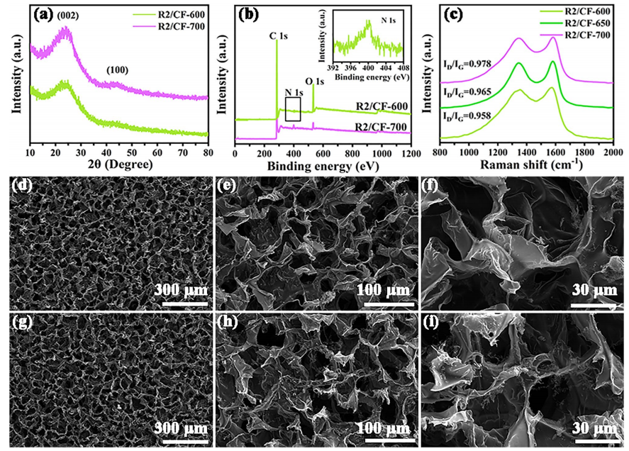 f, g) R2/CF樣品的C 1s和N 1s高分辨率XPS譜圖