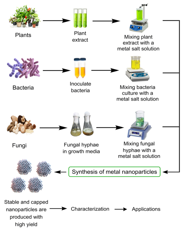研究者的核心目標始終是通過生態友好方法制備綠色納米顆粒。微生物和植物介導的納米顆粒合成是納米技術的關鍵環節,其體內的酶及其他化學物質可作為生物合成中的‌還原劑與封端劑‌。這些方法能高產率制備結構穩定且表面封端的納米顆粒,并通過多種表征技術分析其特性。綠色納米顆粒可應用于生物醫學、農業、環境治理、食品工業、護膚美容及能源領域。