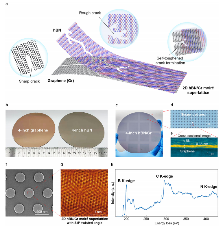 提出‌自增韌型hBN/Gr莫爾超晶格膜‌,通過hBN主導裂紋擴展行為實現: