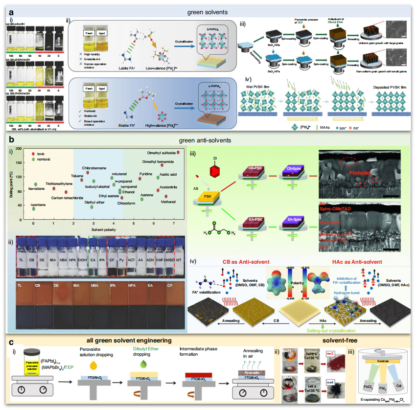 圖2集中展示了多種提升鈣鈦礦薄膜質量的方法,這些方法對于提高鈣鈦礦太陽能電池(PSCs)的效率和穩定性至關重要。
