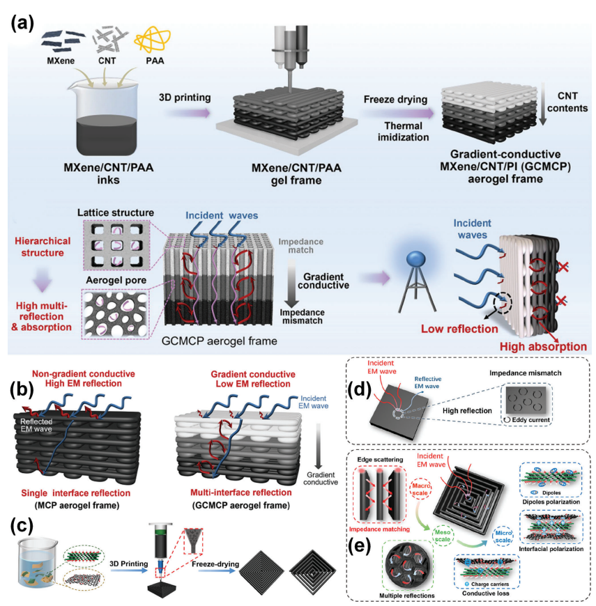 1、“結構-功能”一體化設計:首次通過3D打印同時編程導電梯度與孔隙梯度,突破傳統材料單一損耗機制的限制(文獻[201]);