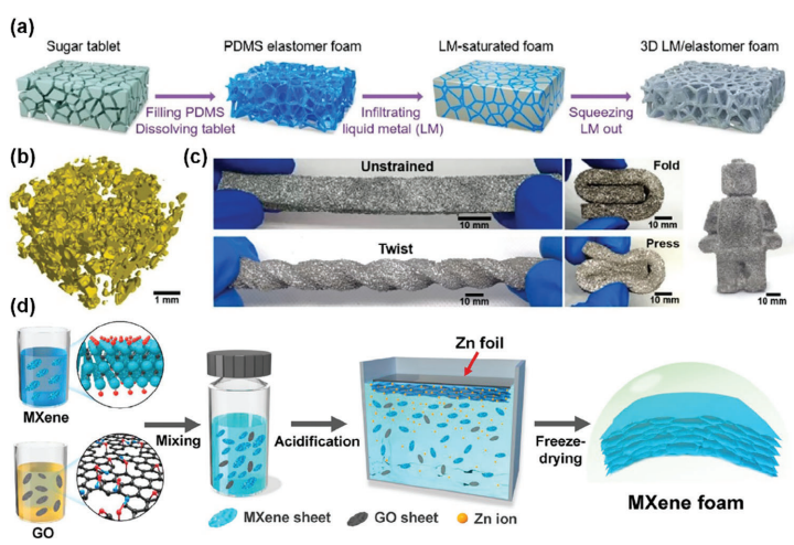 a) 通過真空輔助過濾法制備的柔性自支撐紙狀MXene基納米復合膜(比例尺:5毫米)。經許可改編自文獻[84],版權歸2019年《自然》所有。