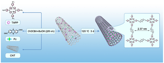 原位復合工藝:采用原位溶劑熱縮合方法,使TAPP-Pz-COF納米片通過π-π相互作用均勻生長在碳納米管表面。這種緊密的界面結合極大降低了界面電阻,顯著提升了復合材料的整體電子電導率。