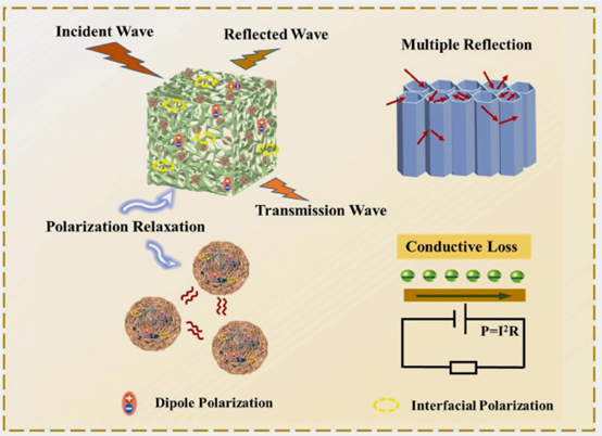 該圖通過示意圖形式,系統(tǒng)闡述NBCP復(fù)合材料中電磁波被吸收和耗散的多重物理機(jī)制,通常結(jié)合微觀結(jié)構(gòu)特征與宏觀電磁響應(yīng)進(jìn)行可視化呈現(xiàn)。