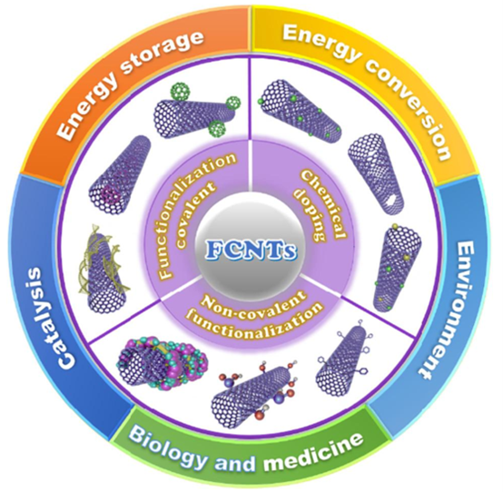 圖1. 功能化碳納米管(FCNTs)的設計策略與應用概述。