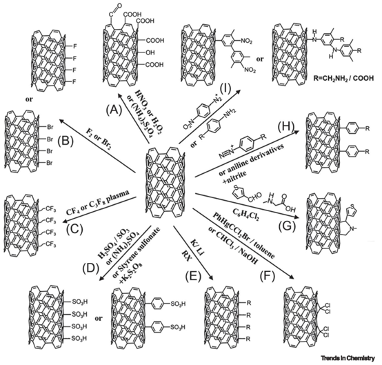 Figure 2和Figure 3共同構成了CNT功能化的 “工具箱”,研究者可根據目標應用的需求(強調穩定性還是保留本征性質)選擇或組合使用。