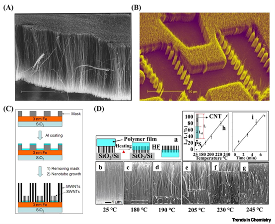 A & B:取向CNT陣列的制備與微圖案化基礎
