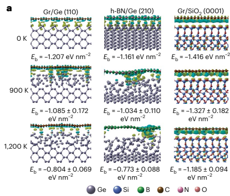 第一性計算表明,熔融態鍺襯底的Ge-Ge鍵斷裂,削弱了與二維材料的相互作用,從而實現無損轉移。