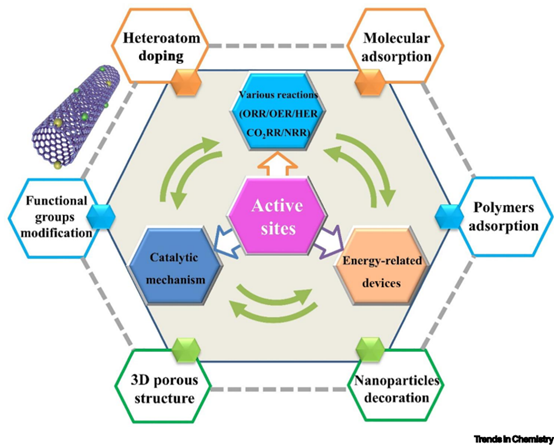 雜原子摻雜:氮、硼、硫等替代碳原子,調控電子結構(如氮摻雜提升電催化活性)。