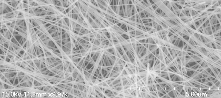 銀納米線除具有銀優(yōu)良的導(dǎo)電性之外,由于納米級(jí)別的尺寸效應(yīng),還具有優(yōu)異的透光性、耐曲撓性。因此被視為是最有可能替代傳統(tǒng)ITO透明電極的材料,為實(shí)現(xiàn)柔性、可彎折LED顯示、觸摸屏等提供了可能,并已有大量的研究將其應(yīng)用于薄膜太陽(yáng)能電池。此外由于銀納米線的大長(zhǎng)徑比效應(yīng),使其在導(dǎo)電膠、導(dǎo)熱膠等方面的應(yīng)用中也具有突出的優(yōu)勢(shì)。