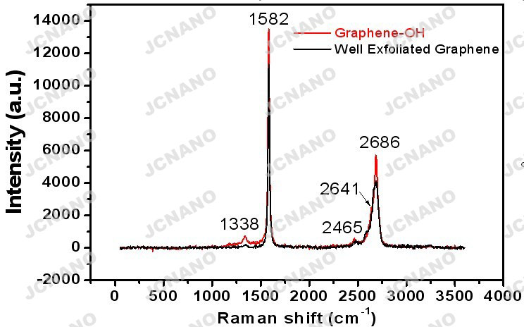 Figure 1 Raman spectra of hydroxyl groups modified graphene (note: most of them are single-layered) and well-exfoliated graphene sheets.