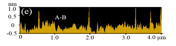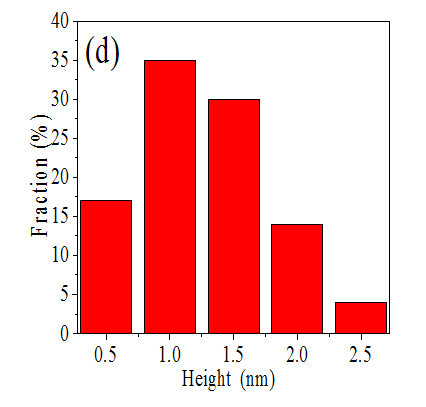 Fig. 1Microstructure of the as-prepared GQDs: (a) TEM image. Inset of (a): HR-TEM image. (b) Diameter distribution. (c) AFM image. (d) Height distribution.(e) Height profile along the line A–B.